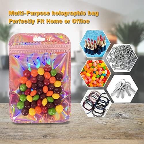 Measurement : The outer dimension is 10.5x5cm (4×6 “) and the internal dimension is 9.5x12cm (3.7×4.7”).There are 100 items of resealable holographic baggage within the package deal, sufficient in your day by day use.Please word that the precise shade might seem in a slight distinction beneath totally different gentle,angle and display screen.The identical dimension of packaging and storage makes messy objects look neat and tidy.