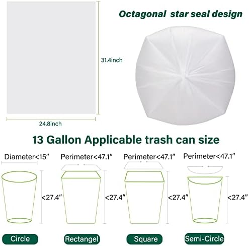 【Thickening & Dependable Energy】In accordance with the statistics, the biodegradable trash luggage within the present market are manufactured from skinny materials which may simply break. So as to ease worries over this subject, we have now thickened our rubbish luggage 13 gallon together with improved octangle star-sealed backside. which upgraded leaking proof & bearing capability, you may discover our massive trash luggage include glorious resistance to ripping, leak-proof, forestall odor, and further sturdy. BTW please keep away from sharp stuff.