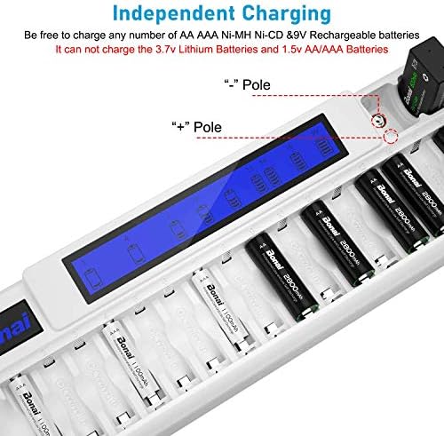Unbiased Battery Charger: Bonai good battery charger gives 16+2 particular person charging slot, permitting you to cost any mixture of 1-16pcs AA/AAA NIMH NI-CD and 9V rechargeable batteries, NOT essentially to cost in pairs