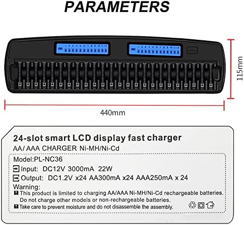 NOTE:24 Bay Sensible Battery Charger LCD Show for AA/AAA NiMH/NiCd Rechargeable Batteries with Constructed-in IC Safety & AC Wall Adapter,do not work for 18650 18490 18350 17670 17500 16340 RCR123 14500 IMR 10440 3.7V Lithium Li-ion LiFePO4 Rechargeable Batteries and alkaline batteries