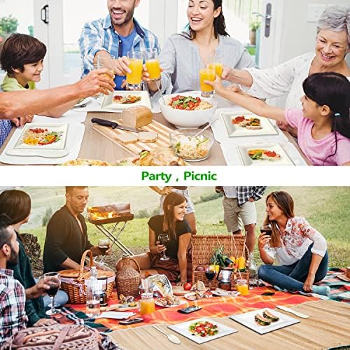 Extra Sensible Dimension – Our sq. paper plates is 10 inch and eight inch,Our massive 7.5 inch Forks, 7 inch Knives and seven inch Spoons permit for a agency grip whereas chopping or scooping by means of robust meals