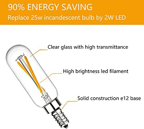 Dimmable T6 LED Bulbs 25W Candelabra Bulbs 3000K Gentle White, Clear Classic 2W E12 LED Filament Edison Chandelier Mild Bulbs with Ornamental, 12 Pack
