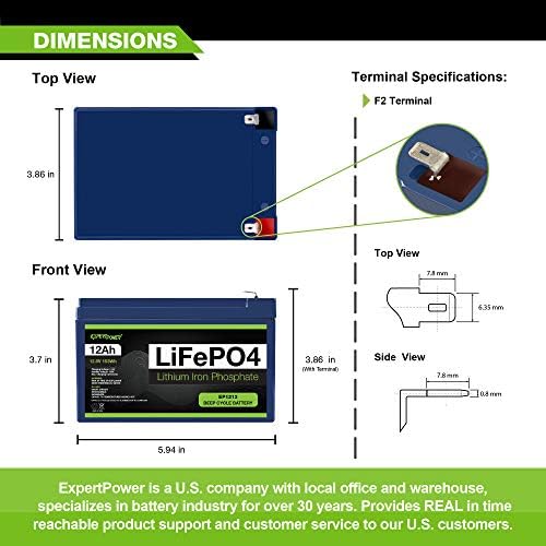 ExpertPower 12V 12Ah Lithium LiFePO4 Deep Cycle Rechargeable Battery | 2500-7000 Life Cycles & 10-12 months lifetime | Constructed-in BMS