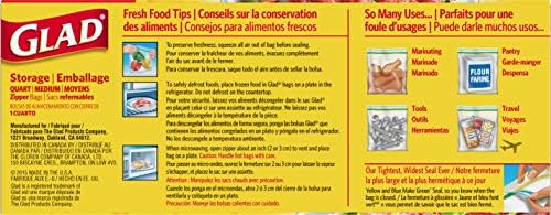 MULTIPURPOSE STORAGE BAGS: Glad quart zip seal baggage are perfect for storing meals earlier than and after preparation, marinating meat or use as a reusable plastic bag to pack and arrange objects whereas touring or on the go