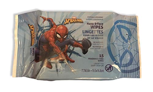 Assorted Themed Hand & Face Wipes: Disney Vehicles/ Marvel Spider-Man/ Star wars. Hypoallergenic No Alcohol No Parabens Perfume Free.