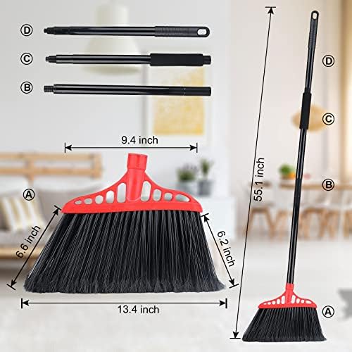 Heavy Responsibility Broom Out of doors/Indoor Industrial Broom with 55″ Lengthy Deal with, Family Broom Excellent for Kitchen Storage Room Flooring Foyer Pet Hair Garbage Sweeping – Purple and Black Broom