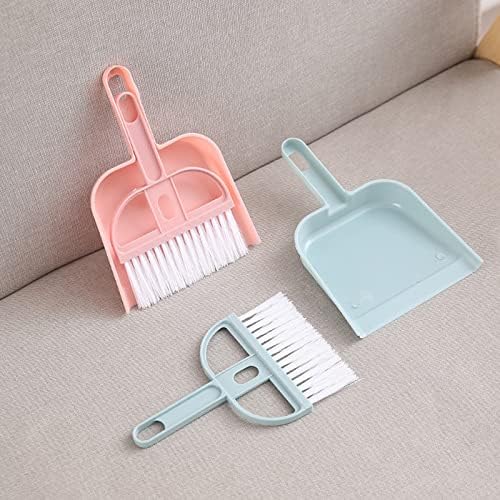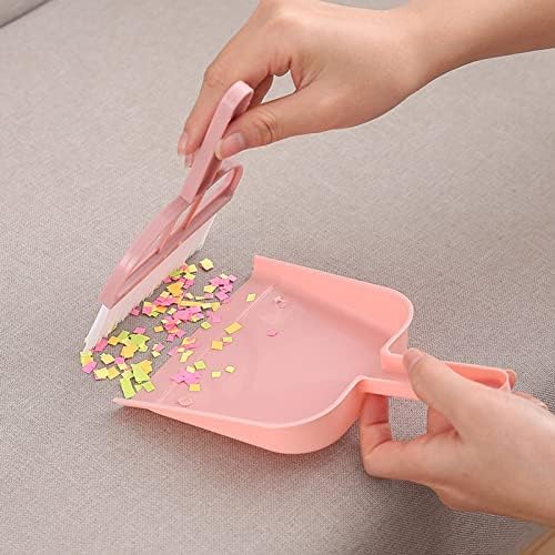 Mini Dustpan and Brush Set, 2 Pack Broom and Dustpan Set for Residence with Microfiber Cleansing Material, Cleansing Set for Desk,Countertop,Couch,Key Board and Pet Litter (Inexperienced,Pink)