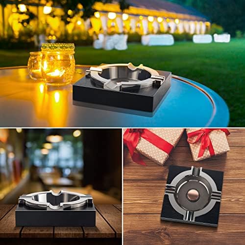 The black cigar ashtray physique is stable wooden,steel Tray,polished chrome end,sturdy It’s a sturdy steel wood cigar ashtray for cigar smoker Helpful and handy.The cigar ashtray have 4 massive cigars grooves to carry cigar or cigarette regular,match any cigar or cigarillo Straightforward to wash.Polished gunmetal end small dome within the middle, massive basin tray for cigar ash Dimensions: 6.1″x 6.1″ x 1.58″, Weigh:2.1 kilos.A pleasant dimension heavy cigar ashtray Fashionable style Cool design,Nice cigar Ashtray for out of doors/ indoor,excellent present for a cigar smoker