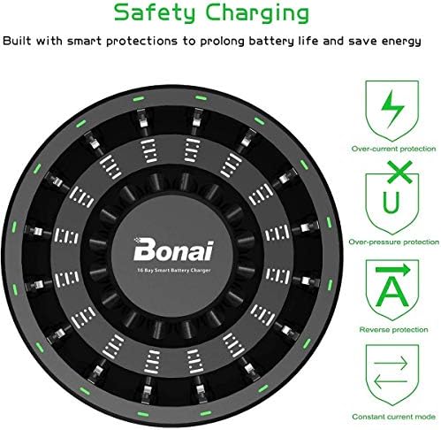 Rechargeable AAA Batteries with Charger,BONAI 16 Pack AAA Rechargeable Batteries and 16 Bay Battery Charger for AA AAA(1100mAh Excessive Capability, Spherical Design Charger)