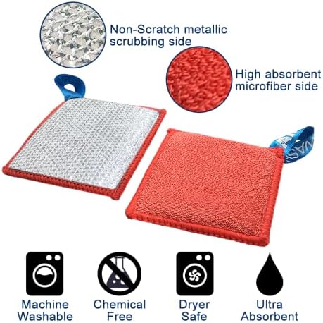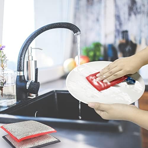 Twin-use Kitchen Sponge: The AMERWASH PLUS kitchen cleansing sponge is dual-sided. The metallic facet is made from sturdy nylon fiber mesh, it is secure to scrub away heavy responsibility messes, oil, dust, and burn stains on dishes and pots with out scratches. The opposite facet is made from extremely absorbent microfiber material, nice for laundry dishes and wiping down the kitchen.
