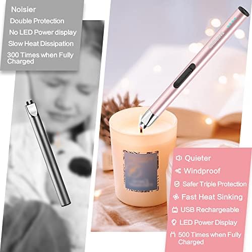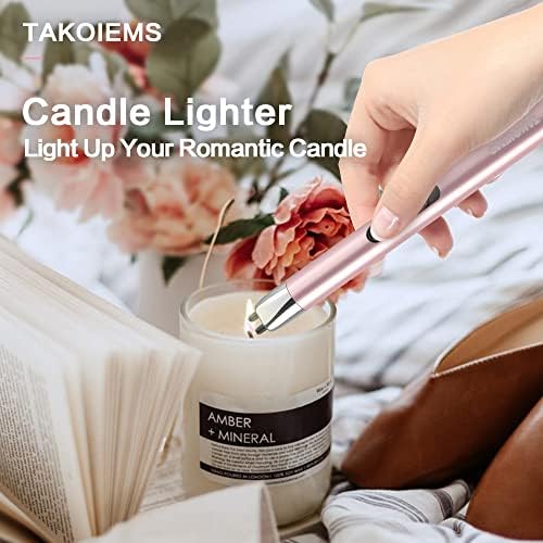 TAKOIEMS Lighter Candle Lighter Electrical Lighter Up to date with LED Battery Show Security Change, USB Lighter Rechargeable Lighter Flameless Windproof Arc Lengthy Lighters for Candle Grill Fireworks Pink