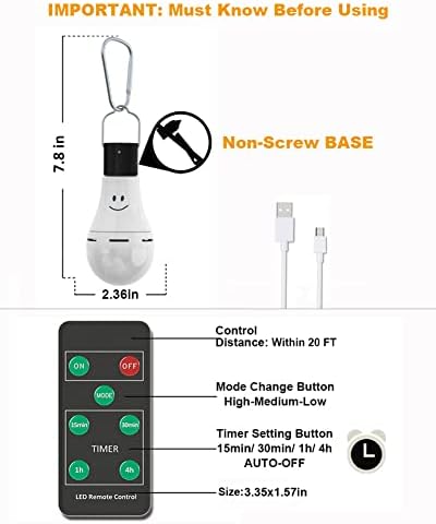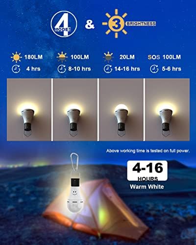 USB Rechargeable LED Mild Bulbs with Distant, Moveable Smooth White LED Tenting Mild Bulb LOTOFIT Battery Backup Emergency Mild Bulb with 4 Mild Modes for Indoor, Outside, Tenting, Climbing