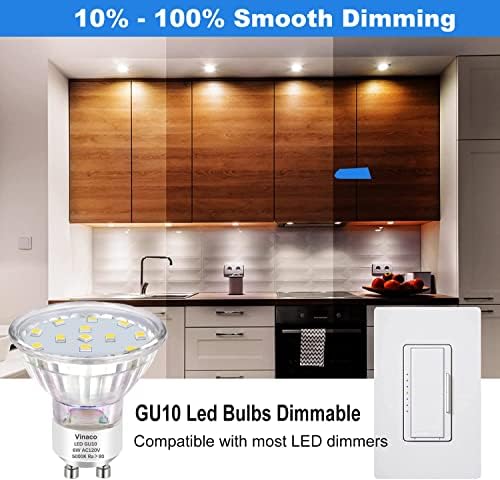 Vinaco gu10 led Bulbs dimmable, 6 Pack Excessive Brightness 500LM 6W led gu10 Bulbs Daylight 5000k, Equal gu10 Halogen 50W, Lengthy lifespan 30000hrs, mr16 gu10 led Bulb with Full Glass Cowl Reflector