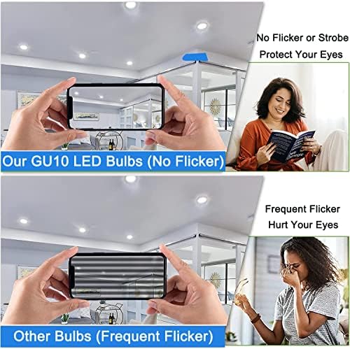 3,【GU10 Led Bulbs Dimmable】: 6w gu10 led bulb, seamless dimming functionality (10% – 100%) appropriate for any environment or ornament, suitable with most of most LED dimmers. LED GU10 bulbs, flicker free and nil harsh glares prevents eye fatigue and supplies a cushty and stress-free environment. Secure for your loved ones and the setting.